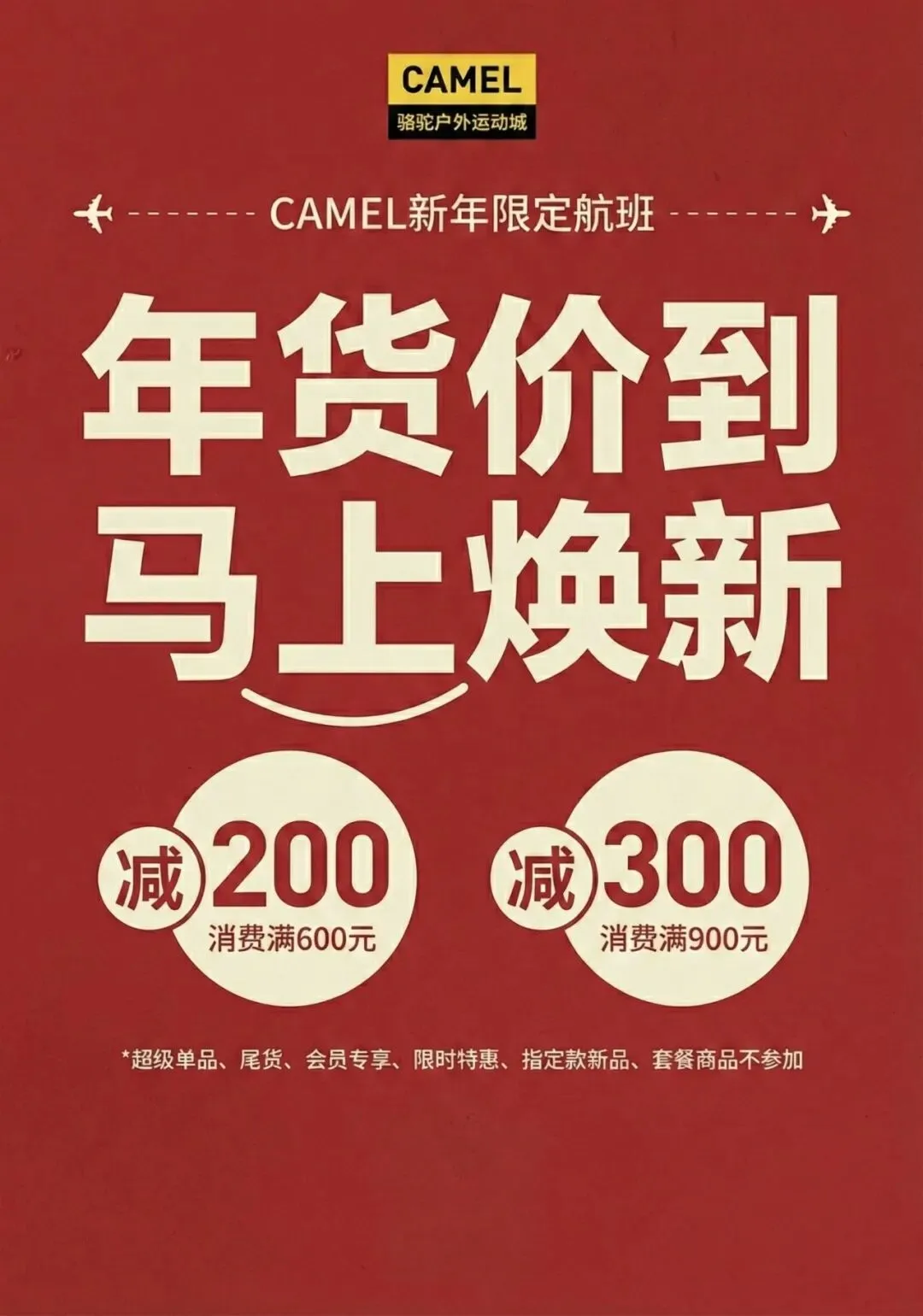 >骆驼户外运动城|年货价到!消费满600减200!峰行者 早春启程·轻砺前行