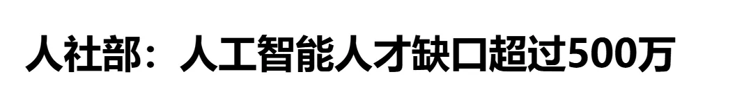 人力资源社会保障部有关报告显示,据测算,当前,我国人工智能人才缺口超过500万,供求比例达1:10。
