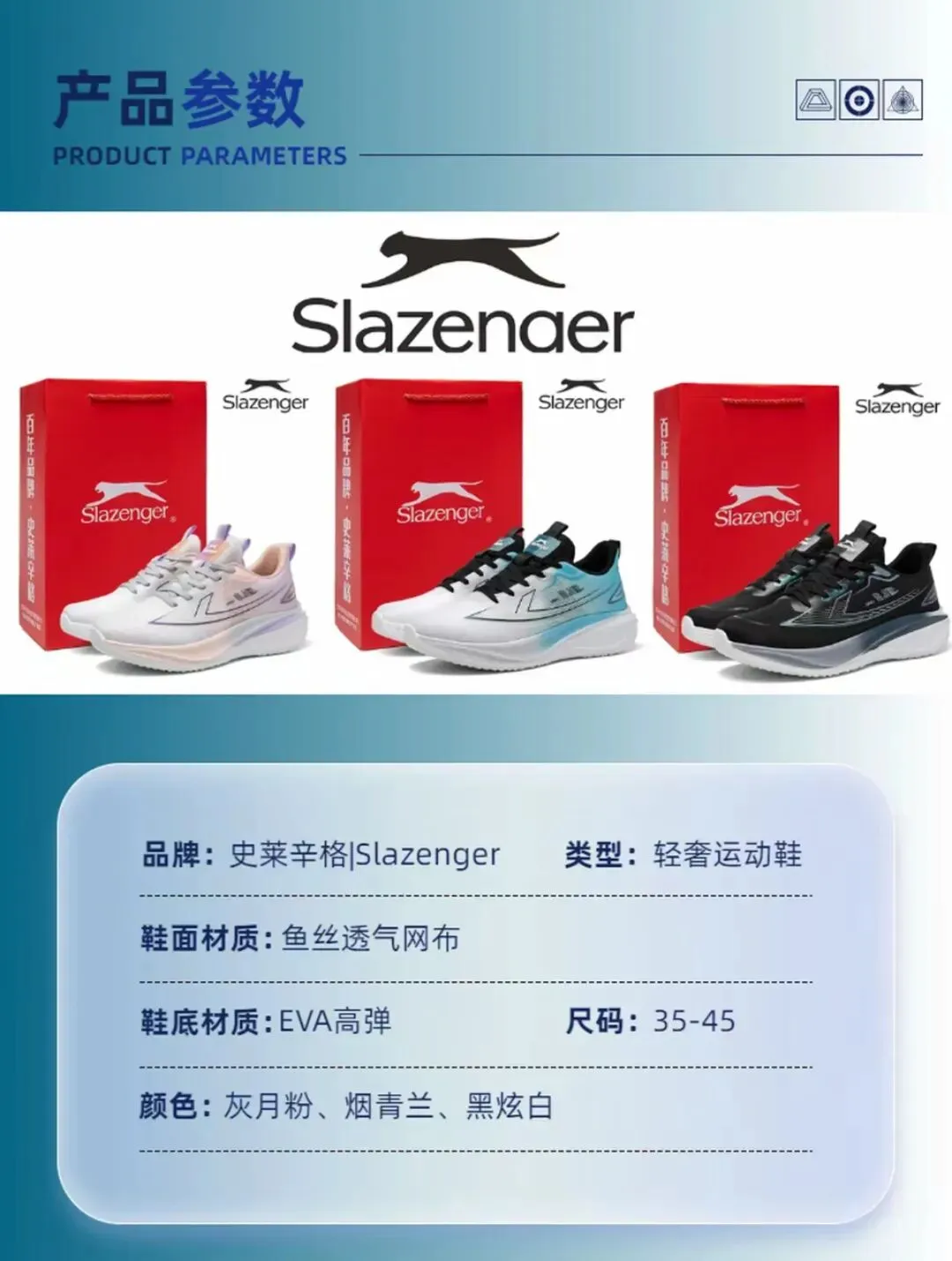 🔥Slazenger/史莱辛格 烟青兰情侣跑鞋