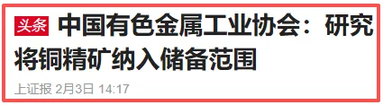 有色金属工业协会准备讲铜精矿纳入储备范围,这对于有色铜是个非常大的好消息,受此消息带动,紫金、铜陵、江铜等尾盘爆拉;