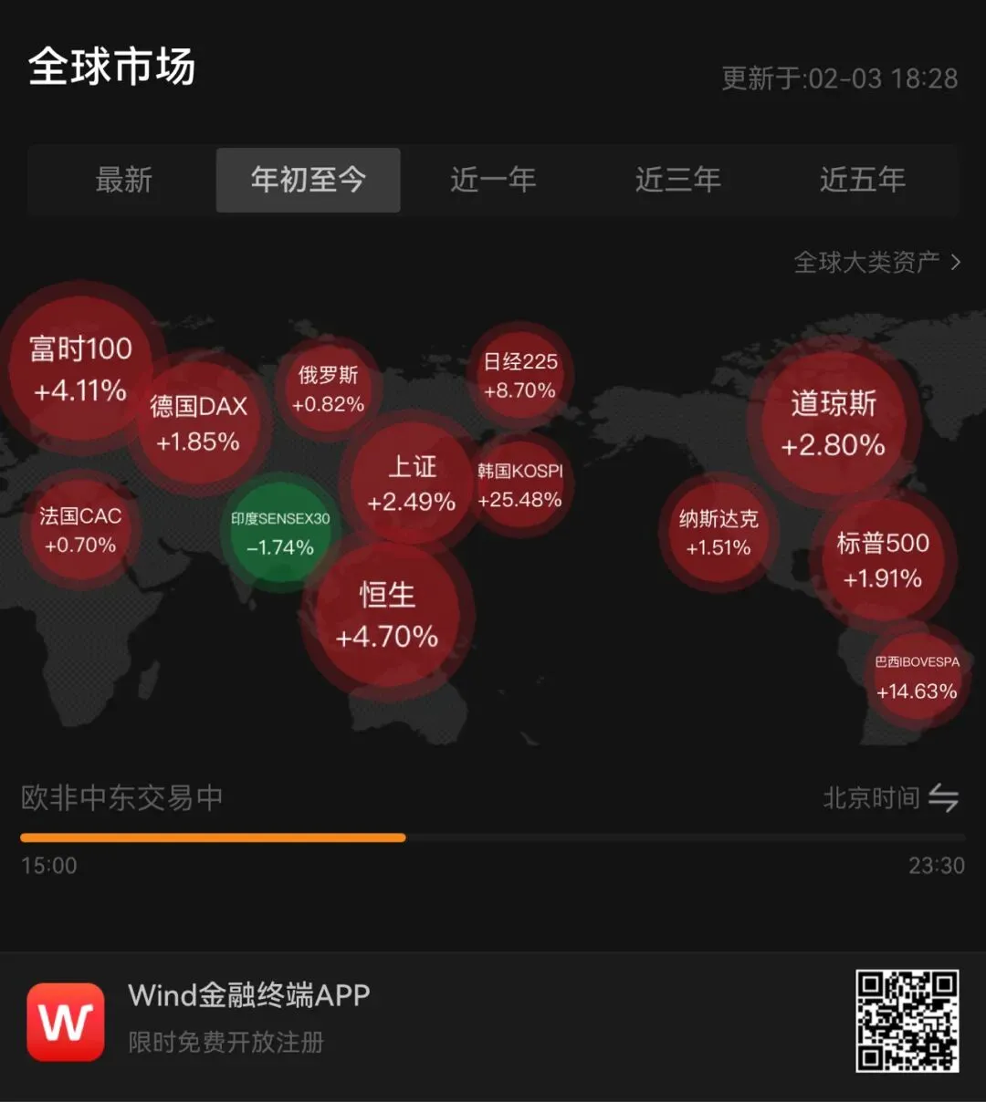 从全球视角看,A股年初至今+2.49% 的涨幅保持稳健,韩国市场(+25.48%)和日经指数(+8.70%)领跑全球,为亚太风险资产提供了积极的情绪背景。