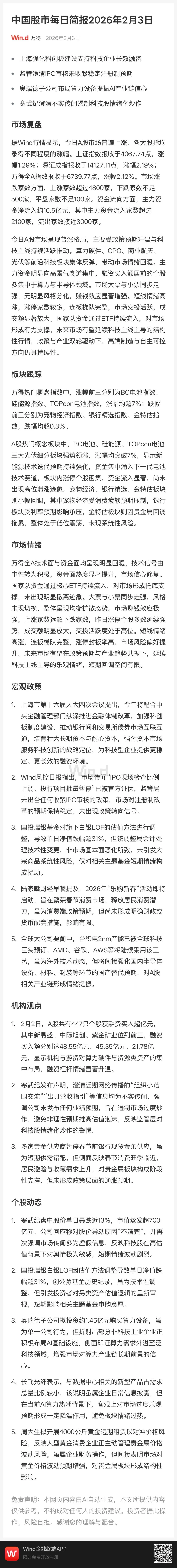 驱动行情的核心力量明确。一方面,政策预期持续升温:上海强化科创板建设、监管澄清IPO政策稳定预期,为市场注入了“定心丸”。另一方面,科技产业主线强势回归:资金坚决涌入算力硬件、CPO、商业航天、光伏等高景气赛道。万得简报指出,BC电池、硅能源、TOPcon电池等光伏细分板块暴涨超7%,成为今日最亮眼的风景线。