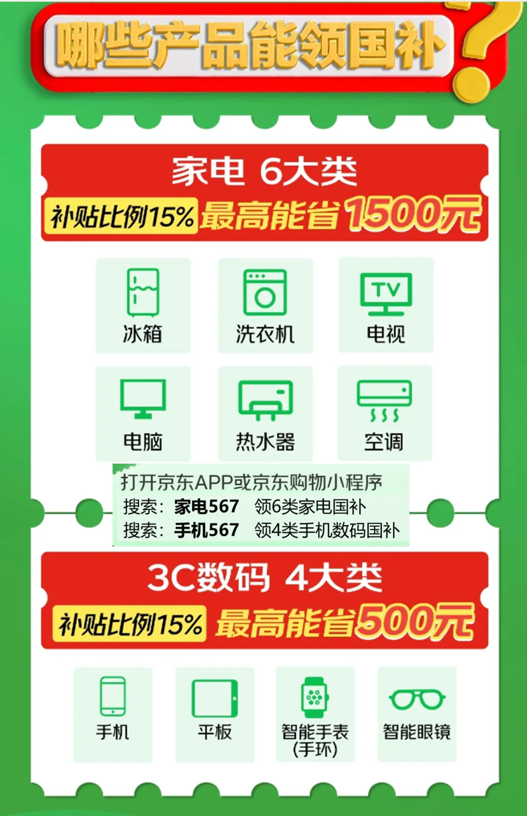买电脑的话额外再搜“电脑补贴567”,能再领最高500元专属大额券,三重优惠叠加,买笔记本能省不少。如果同时买家电,再搜“家电567”,还能领2026年1500元家电国补,一站式采购更划算。