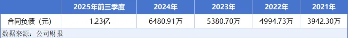 2025年前三季度,公司合同负债达到了1.23亿元,较年初的6480.91万元翻了一倍。