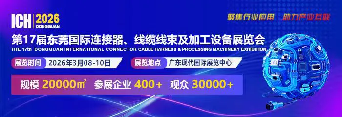 春潮涌动处,奋进正当时!ICH2026第17届东莞国际连接器线缆线束及加工设备展览会,作为行业开年首展,既是洞察行业趋势的“瞭望台”,也是拓展商贸渠道的“加速器”。现诚邀广大连接器线束行业的采购商、研发人员、行业从业者、专家学者莅临现场,与全球行业同仁共襄盛会、共赏前沿科技、共寻合作商机,携手推动行业高质量发展!2026年3月8-10日,广东现代国际展览中心(东莞厚街),期待与您相约!