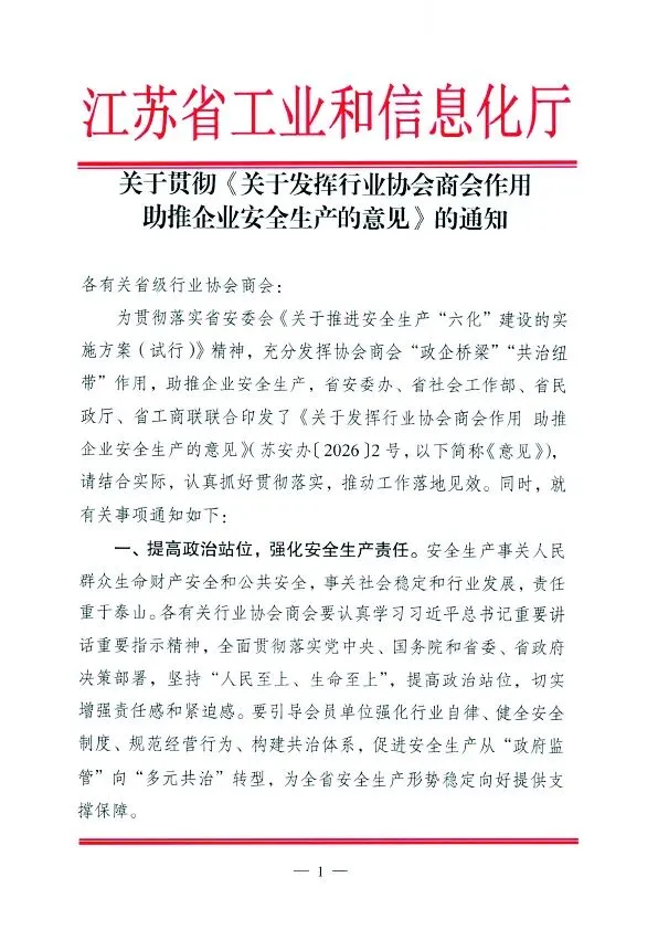 省工信厅发布关于贯彻《关于发挥行业协会商会作用助推企业安全生产的意见》的通知