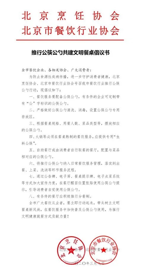 将推行公筷公勺纳入日常餐饮服务管理,落实到出餐、上菜、洗消等环节服务流程;