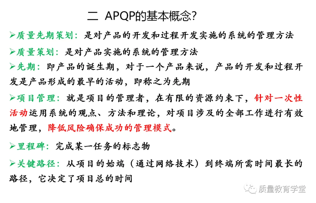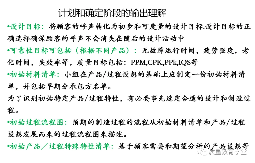 APQP强调在产品量产之前,通过产品质量先期策划,对产品设计和制造过程设计进行管理,用来确定和制定让产品达到顾客满意所需的步骤。