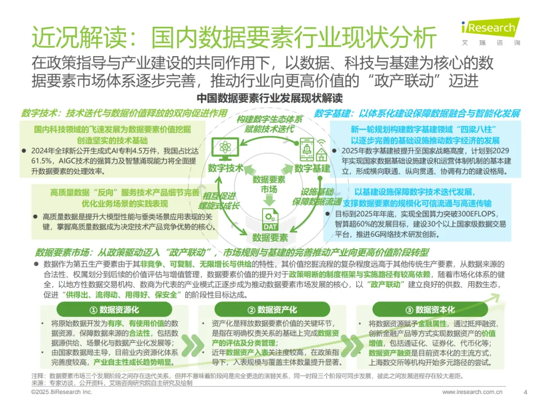 党的二十届三中全会明确提出健全因地制宜发展新质生产力体制机制,促进实体经济与数字经济深度融合;2025 年政府工作报告进一步强调激发数字经济创新活力,推进 “人工智能 +” 行动,完善数据基础制度,深化数据资源开发利用。在以人工智能为核心的新一轮科技革命和产业变革深入演进的背景下,数据作为关键生产要素的战略价值愈发凸显,其与智能的深度融合不仅是催生新产业、新模式、新动能的核心力量,更是我国在全球数字经济竞争中构筑优势、掌握主动权的关键。来源:陈博观察AI工作站(WPS AI)创作