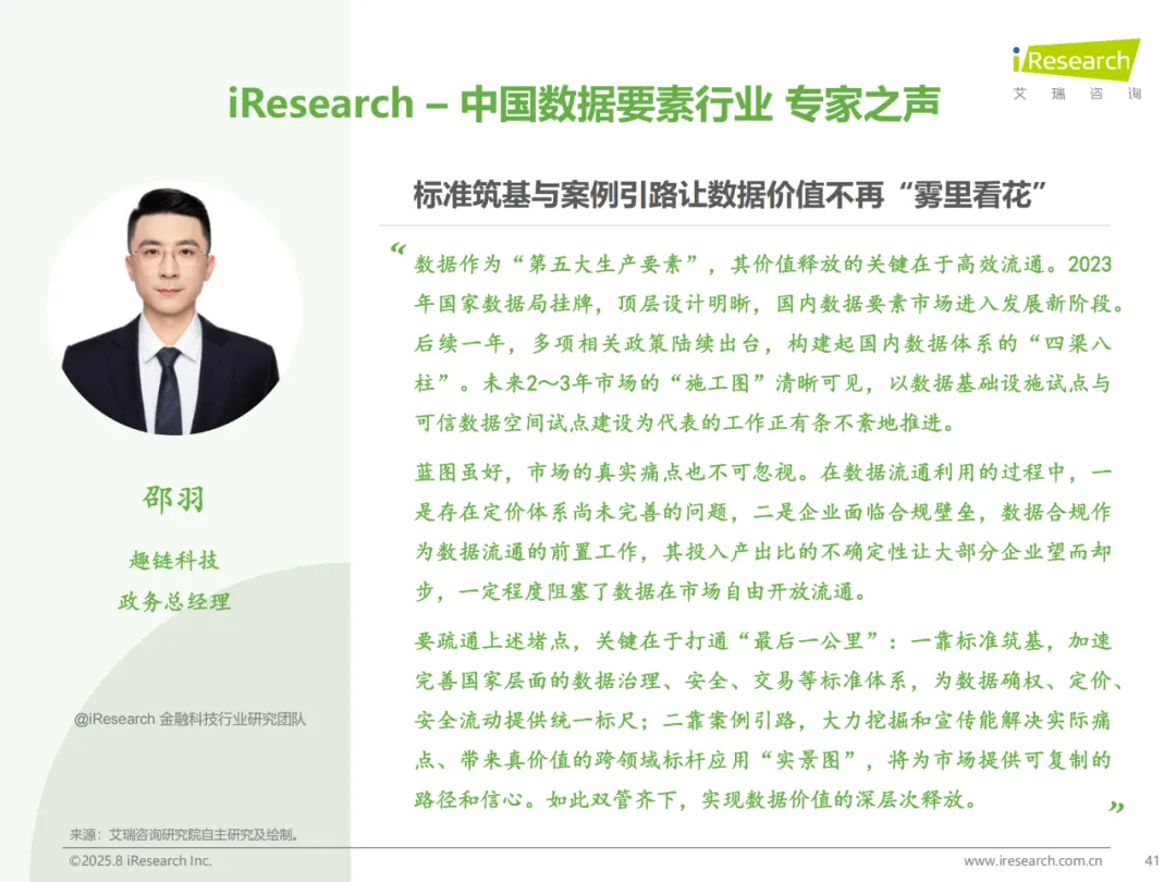 数据交易场所持续探索发展路径,围绕合规增值服务、细分应用场景、公开透明等方向打造核心竞争力。深圳数据交易所出台多项管理办法、规则指引和技术规范,主导或参与 25 项标准编制;25 个数据交易场所按推荐场景建设数据专区,贵阳大数据交易所打造 21 个专区,覆盖农业、医疗等领域。2025 年数字中国建设峰会上,多家机构联合启动 “数价链” 全国一体化数据价格信息服务平台,推动价格互认互通。