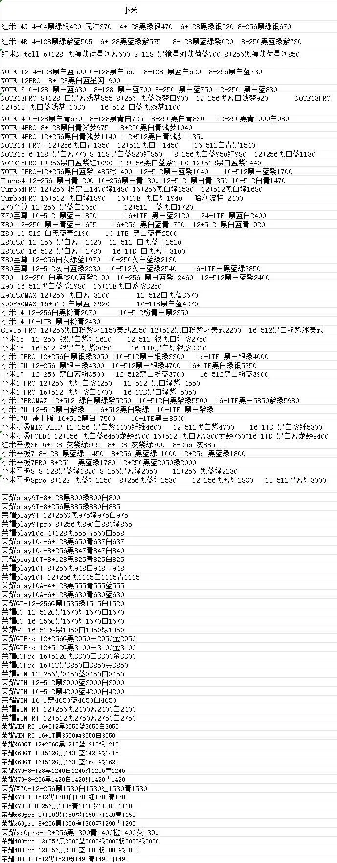 (1)二级市场为自由交易市场,价格实时波动,可能每个小时的卖价都不一样,此报价为华强北市场收货参考行情,实际结算价见公众号:鸟哥撸货数码结算价。