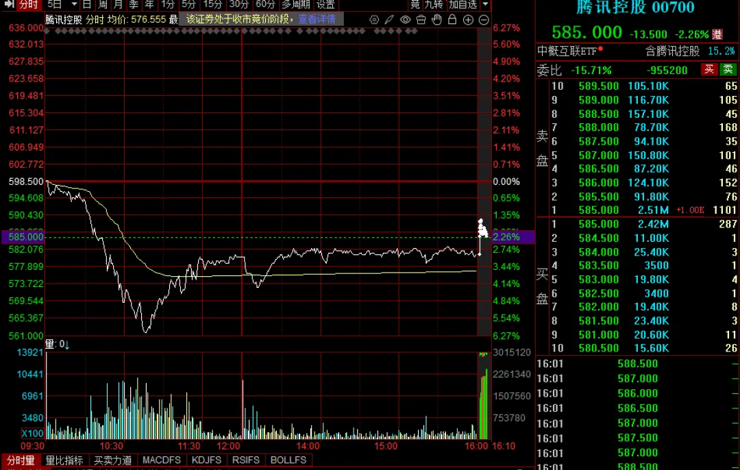 相比于缅A的反弹,今日港股逊色不少,尤其是午后港股持续下探,恒生科技指数跌超3%,恒生指数跌超1%,科网股领跌,快手-W跌超7%,哔哩哔哩-W、腾讯控股跌超6%,阿里巴巴-W、金山云跌超4%。腾讯暗中跌5.85%到564港元左右;阿里巴巴-W跌5%,报156港元左右......有说是因为担忧腾讯的“元宝”、阿里巴巴的“千问”、百度、字节等大厂商积极“参战”,红包总金额超40亿元,点燃烧钱大战担忧,也有传说是金融业、互联网增值服务等或将面临增值税税率上调,甚至游戏行业的税率有可能从6%调高至32%。专家人士辟谣表示