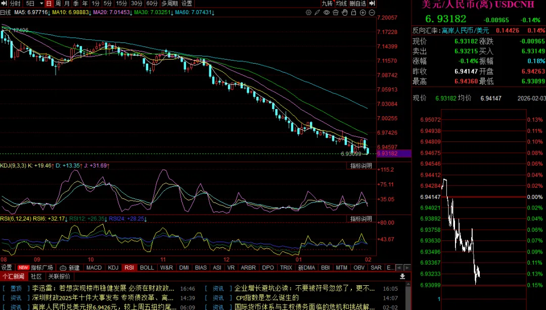 人民币汇率即将突破6.93。今天中间价6.9608,升87点。,持续升值暗示央妈支持升值的态度。