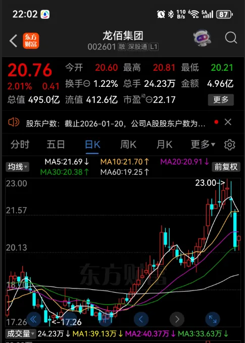 今天刚一开盘,我就在赣锋锂业、龙佰集团抄了了一点货,虽然没买在低点。他们共同点就是这几天都有一根明显下杀的长绿K线,股价基本都在回调10个点以上。大家不要诧异,浓眉大眼、一向提倡价值投资长线持股的我
