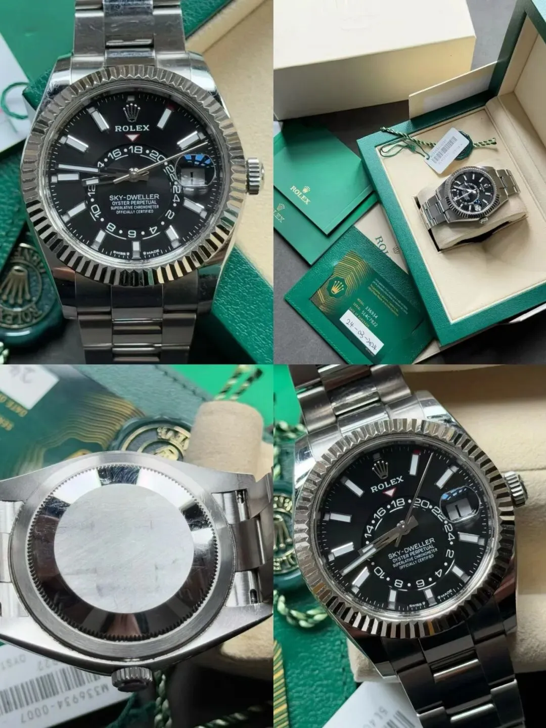劳力士天行者336934直径42毫米,不锈钢表壳,白金狗牙全,年历、两地时功能,使用劳力士9002自动机芯,全套,保卡日期2024年,97新成色。
