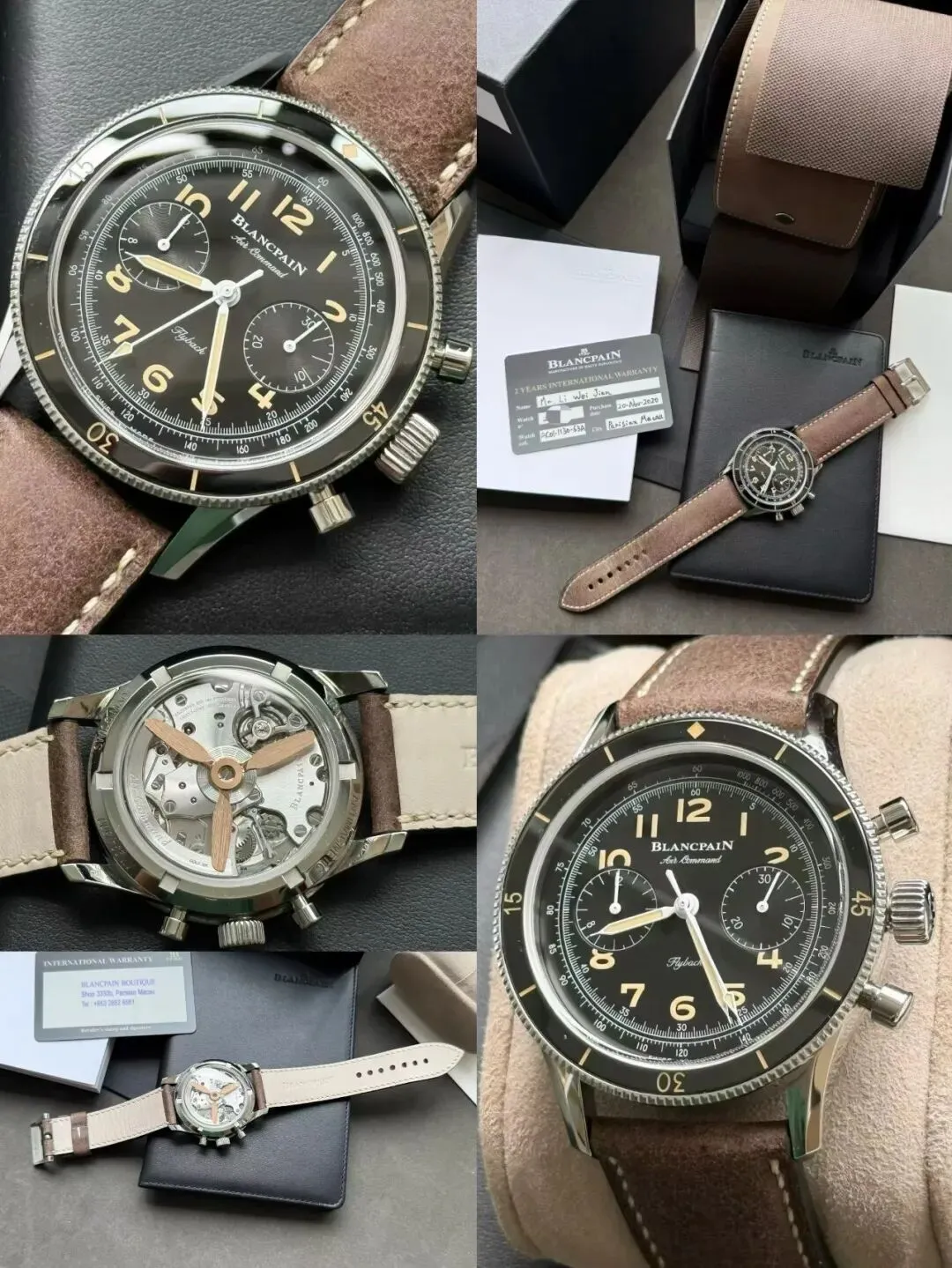 尺寸42.5毫米,不锈钢表壳,陶瓷表圈,使用宝珀F388自动计时机芯,全套附件,保卡日期2020年11月,限量500只,螺旋桨自动陀。