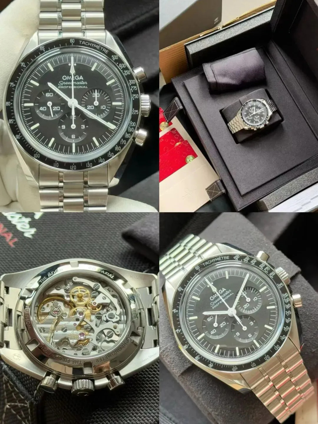 直径42毫米,不锈钢表壳,使用欧米茄3861手动计时机芯,全套附件,保卡日期2023年,97新成色。
