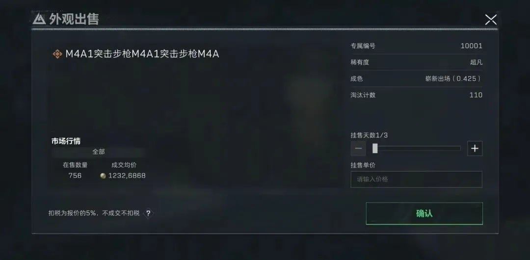 小编今天在看考虑着要不要抽新挂饰看了一下市场价格,结果给我弹出来这个玩意,M4A1皮肤居然价值1200w三角券!其品质为超凡!成色为崭新出厂(0.45)小编感觉是显示Bug!要是真这价格售出了,那变相等于三角洲里面所有的皮肤都有了!不知道兄弟们怎么看