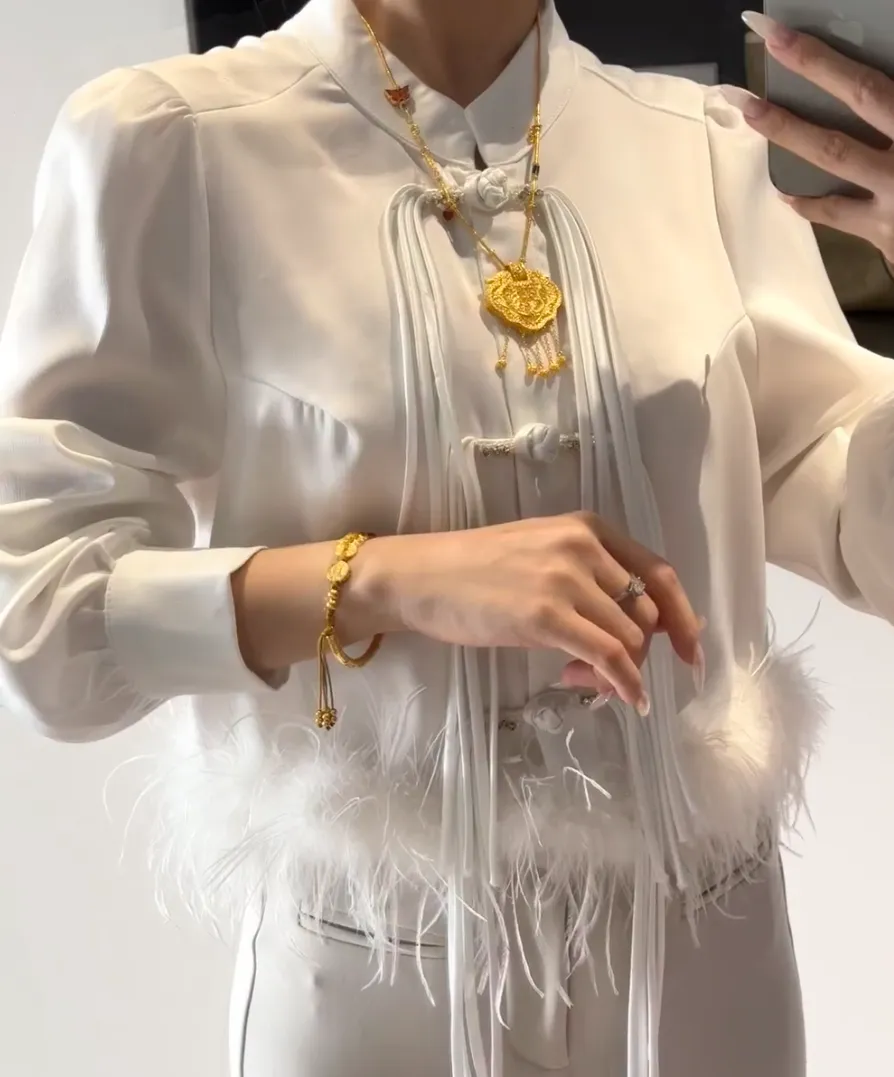 平时上班我会用这套金饰搭配白衬衫或者小香风外套 立马整个气场就上来了 非常适合通勤场合 低调中带点贵气 不会太夸张但很显档次 周末约会我会把项链和手链叠戴 试过和珍珠项链一起搭 就是那种中西合璧的feel 拍照超级出片 有时候和姐妹聚会我会单独戴戒指 配一身休闲卫衣 也完全不会突兀 反而多了点反差感 就是怎么搭都不会出错 属于那种气质百搭型 朋友说每次看到我戴这套都忍不住想下单