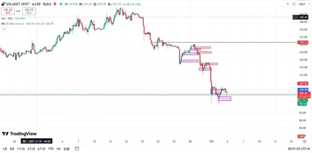 ②多,插针成本区时时好时机,小时图看到104.5USDT,有4u的区间;保守交易者推荐在插针明确后再等待一根k线再关注成交量做多,因为大概率是震荡,如果猛拉上涨,大资金仍需要一定时间收集筹码。