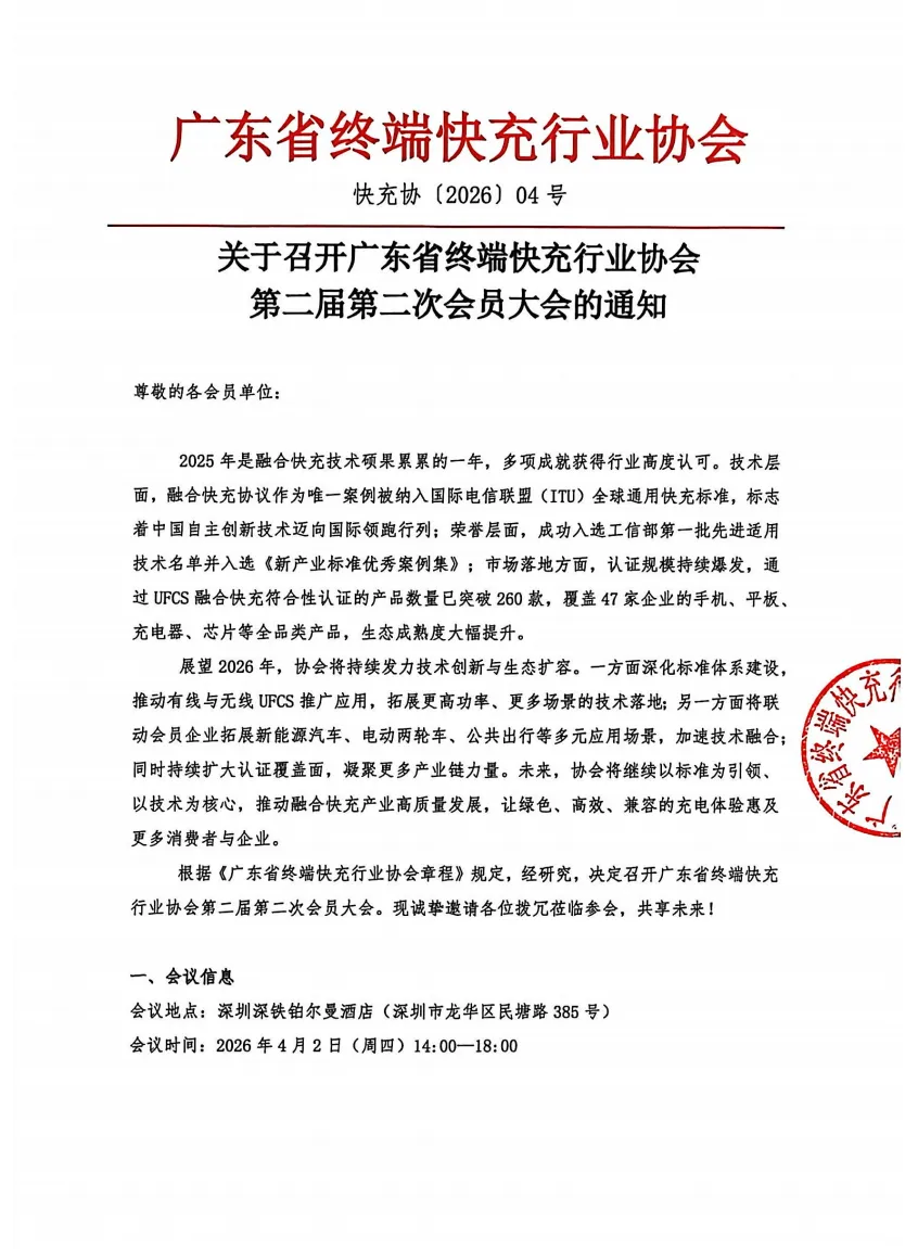 2、14:00-18:00 广东省终端快充行业协会第二届第二次会员大会