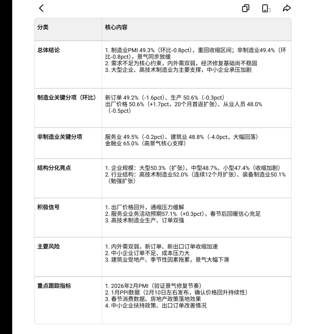 4.关注到1.31发布了2026年1月pmi数据,贴一个豆包的解读图。