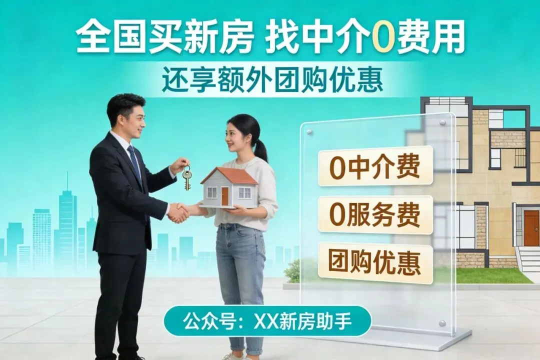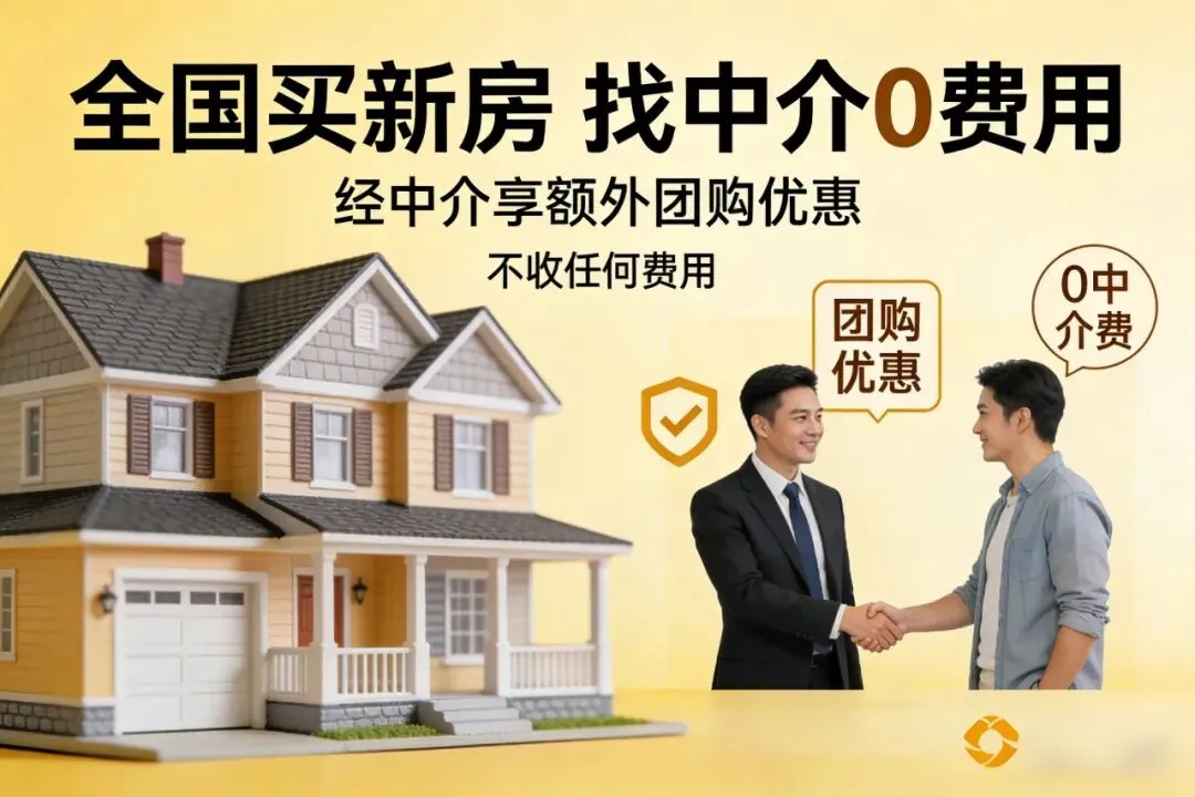 但今天,我们要打破这个行业常态——全国买新房,找中介不仅不收中介费、不收任何隐性费用,通过中介渠道成交,还能额外享受独家团购优惠! 这不是噱头,不是短期促销,而是覆盖全国百城千盘的购房服务革新,让每一位购房者都能省钱、省心、省力买到理想家。