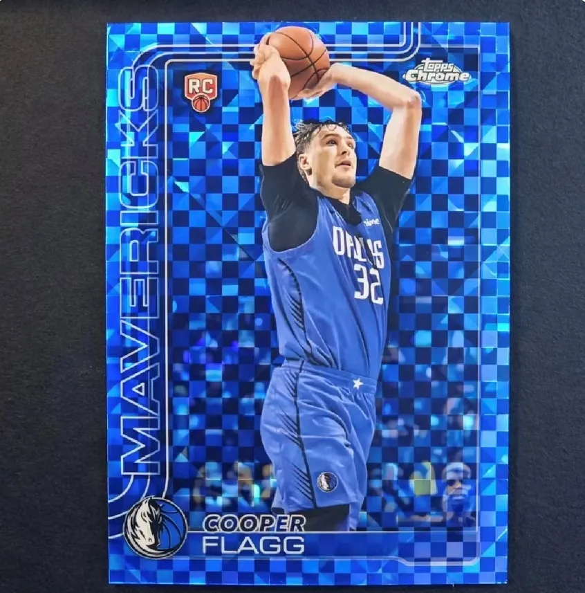 为什么颜色有这么大魔力?这就不得不提球星卡收藏里心照不宣的“Colormatch”。弗拉格效力的独行侠,主色调正是蓝色。试想,一张折射着炫彩蓝光的棋盘折,与球衣颜色浑然一体,那种视觉上的契合与愉悦,对藏家而言,吸引力是致命的。整体感和价值感瞬间提升。颜色匹配,与特殊的“背号编”、“首尾编”一样,早已是圈内公认的溢价法则。