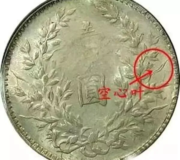 一是嘉禾配空心叶子。其版别丰富,主要是根据嘉禾配珠数量、造字是牛造还是普造以及缺口修模等特征进行分类。这类币的主要特征是头像不缺内齿,肩章简单修模,造为八年造;嘉禾配空心叶子。