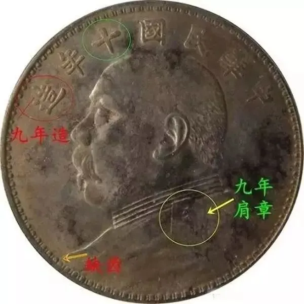 十年九像,该版可能是改刻(即九改十),也可能是混配,个人侧重于改刻,但是大家都叫十年九像,因此这里列入。其特征为:纪年是十年的大头,头像“造”字和“肩章”均为九年特征。