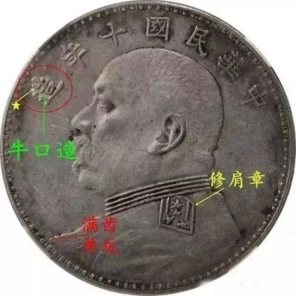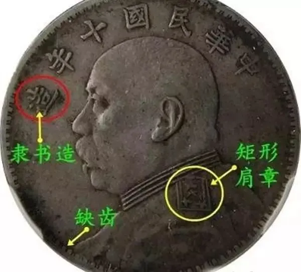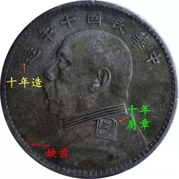 一是八年面改十年混配九年背,头像特征为:胸前不缺内齿,造字为八年牛口造,修肩章;嘉禾特征为九年嘉禾背(实心叶子),俗称牛造实心叶。