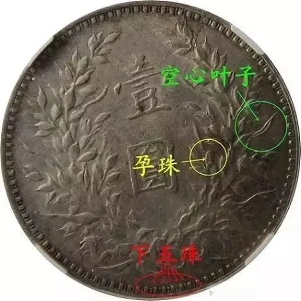 此外还有无口心、横点年版、竖点年版、草头华版、T点年版、左芒勾版、孕六珠版、双孕六珠版、结上点版、结内点版、两芒弯勾版等等。都是在银币字体、纹饰上细节区别的少见“袁大头”。