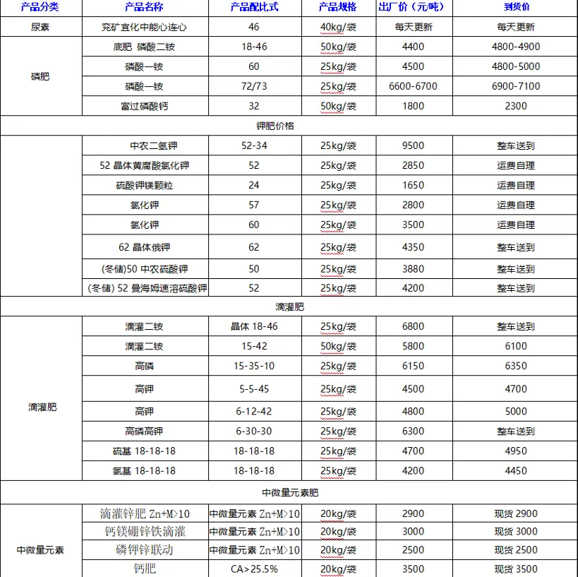 57氯化钾:出厂价2800元,整车3050-3100送到
