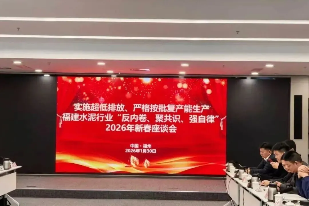 为贯彻落实国家水泥行业产能治理管理、常态化错峰生产以及超低排放改造等政策要求,进一步推动“反内卷、聚共识、强自律”,促进水泥行业高质量发展,2026年1月30日,福建省建筑材料工业协会在福州组织召开福建省水泥行业2026年新春座谈会。会议由福建省建筑材料工业协会会长何友栋主持,福建省工信厅、生态环境厅有关处室负责人出席会议并讲话,全省水泥企业负责人参加会议。
