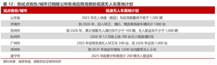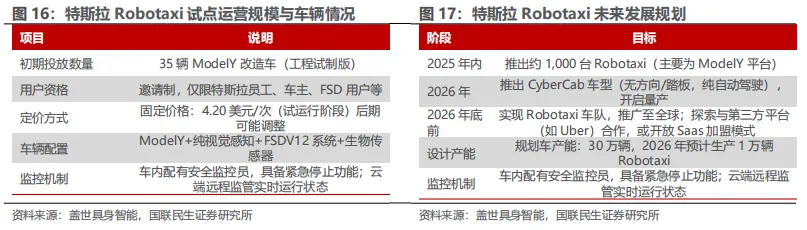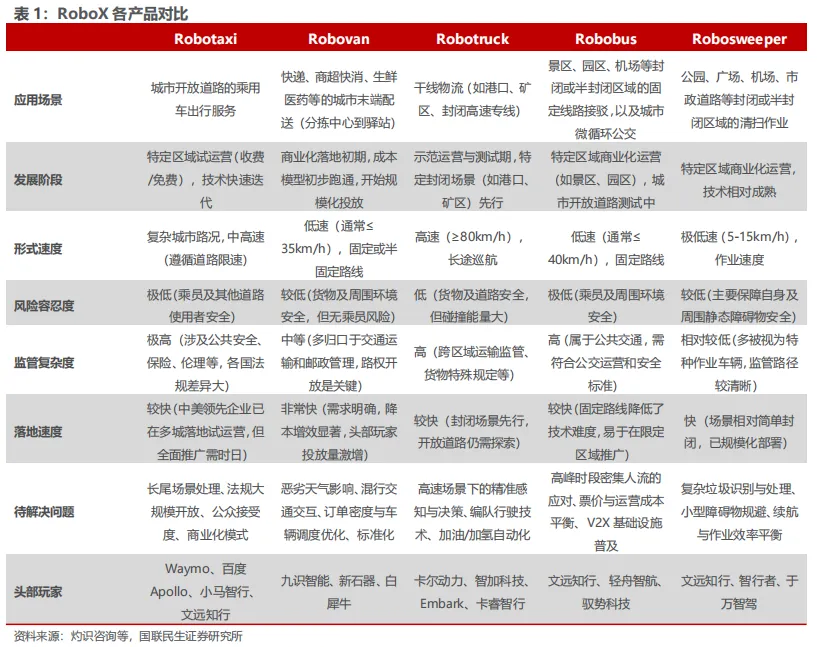 注:文中报告节选自国联民生证券研究院已公开发布研究报告,具体报告内容及相关风险提示等详见完整版报告。分析师执业编号:S0590525110023/S0590525110027证券研究报告:《智能驾驶系列报告四 | RoboX:产业奇点已至 规模化应用加速》本报告署名分析师具有中国证券业协会授予的证券投资咨询执业资格并登记为注册分析师,基于认真审慎的工作态度、专业严谨的研究方法与分析逻辑得出研究结论,独立、客观地出具本报告,并对本报告的内容和观点负责。本报告清晰准确地反映了研究人员的研究观点,结论不受任何第三方的授意、影响,研究人员不曾因、不因、也将不会因本报告中的具体推荐意见或观点而直接或间接收到任何形式的利益。
