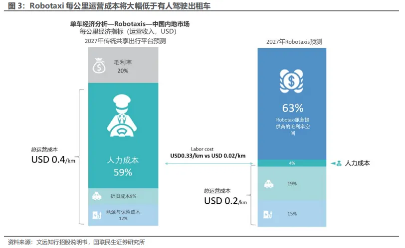 2.1 需求端:Robotaxi能够大幅降低每公里运送成本 2030年市场规模有望达千亿级