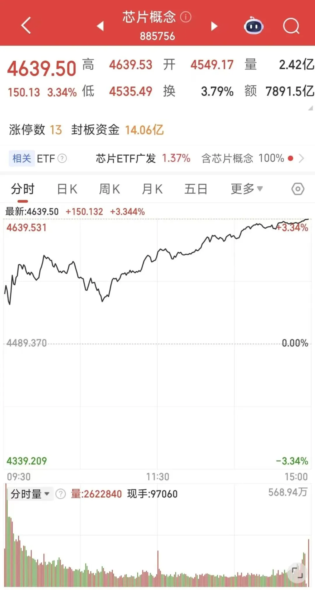 整体地位:芯片概念股持续是市场“吸金”主力。例如,寒武纪以256.23亿元的总成交额位居沪市前列,其沪股通成交额达40.84亿元。