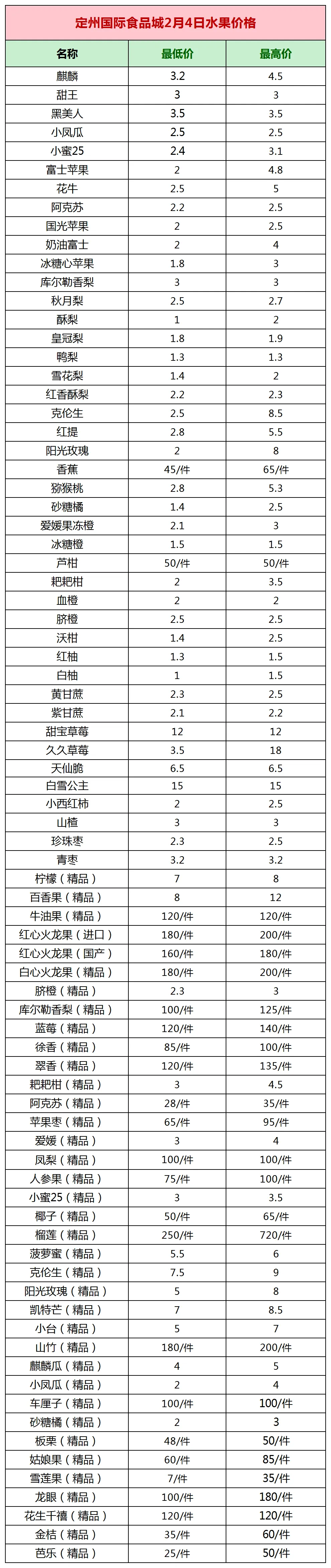 【民以食为天,365天,天天无淡季。为方便广大商户进货采买,获取最新蔬果信息,此微信号每日为您提供定州国际食品城蔬果行情。以下果蔬价格数据计量单位均为元/斤!果蔬价格行情波动比较频繁,请以实际购买单价为准!】