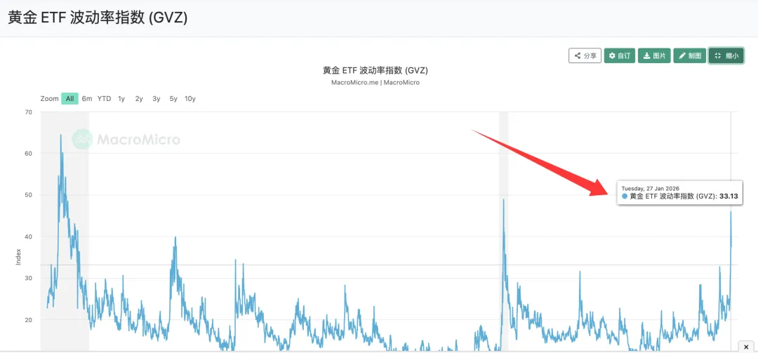 黄金的波动率指标GVZ 快速上行,接近前期高位区间,