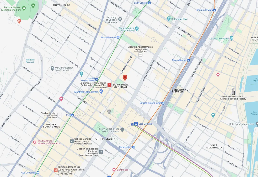 菲利浦广场壹号地理位置十分优越,步行4分钟到McGill地铁站,8分钟可达艺术广场。该地是博物馆、剧院和画廊的北美最大汇聚地。学校、超市、餐馆、咖啡厅等生活所需都尽在咫尺。除此之外,绿地、休闲场所、体育中心和购物中心也都在您的家门口。