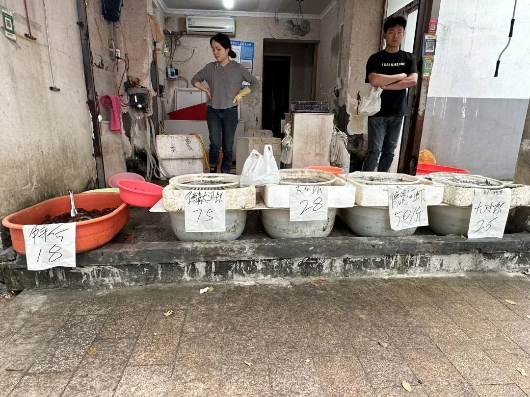” 店主张老板边拣虾边说,“卖得便宜嘛,今年18块一斤,现在一天能卖出100多斤。”