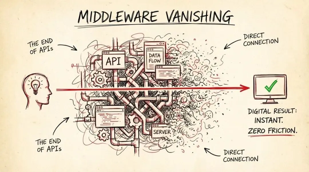 结论:中间件概念消亡。未来集成不是硬连接,而是软握手。GUI大溃败。软件公司如果把核心竞争力放在漂亮界面或复杂交互流程上,就是在雕刻一艘即将沉没的船。未来操作系统只有两个核心界面:给人类对话的聊天框,和给AI看的数据流。