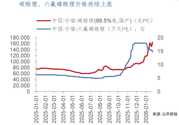 到了2026年1月26日,六氟磷酸锂现货价格维持在14.3万元/吨,同比涨了近300%,保持在了比较高的水平。