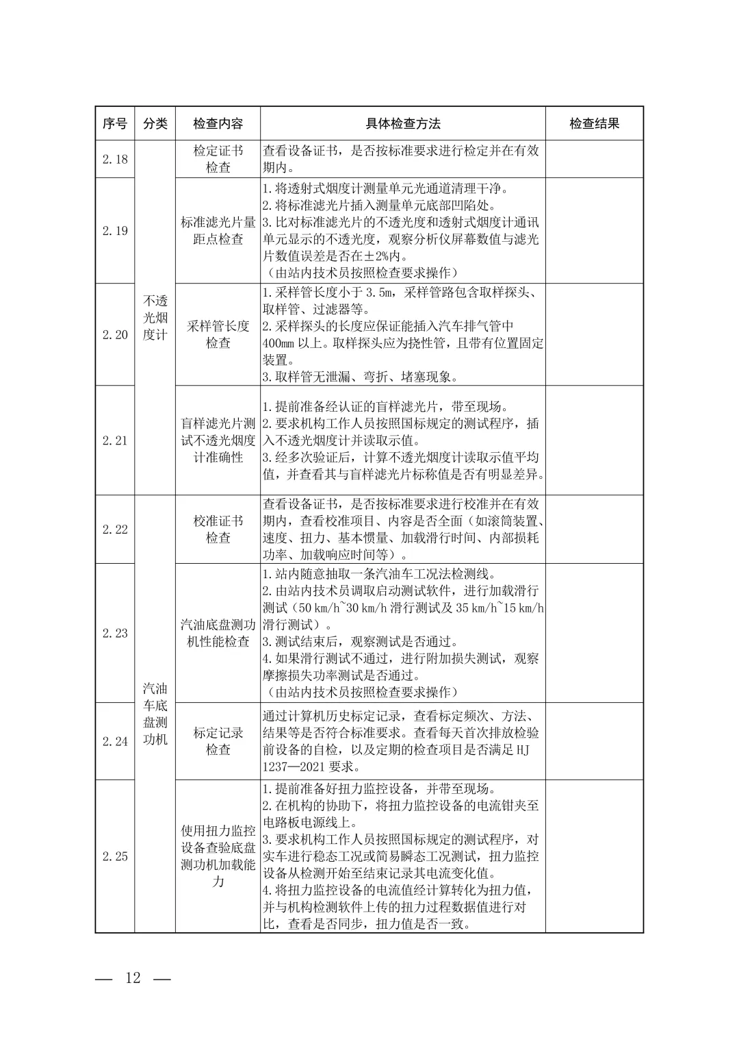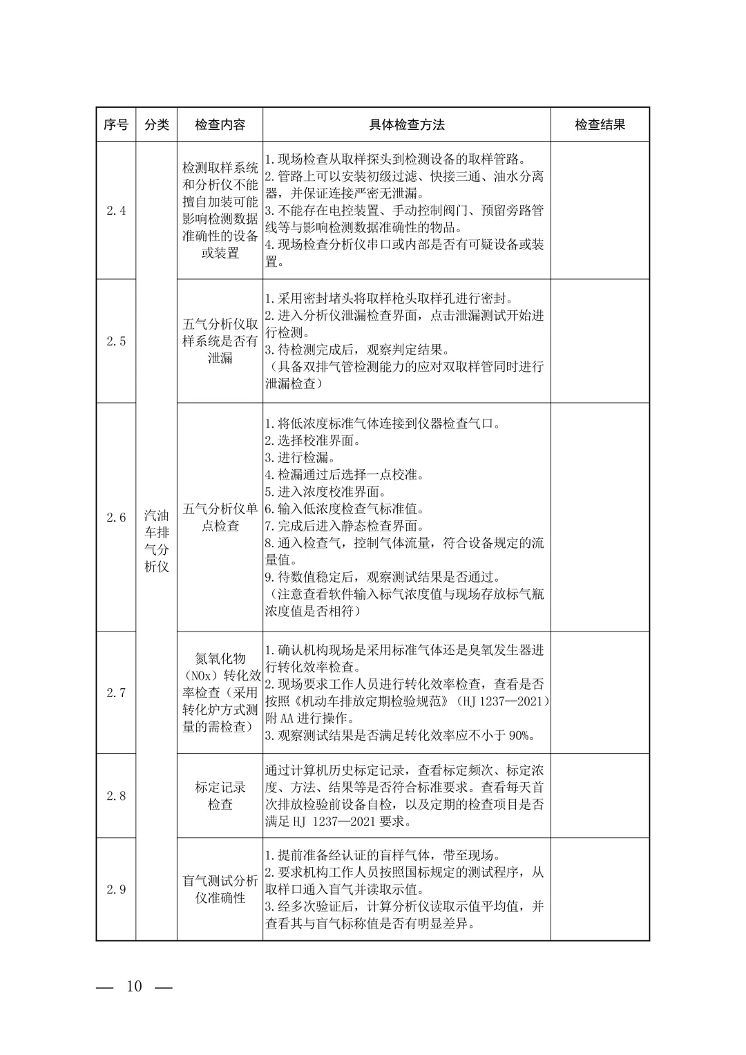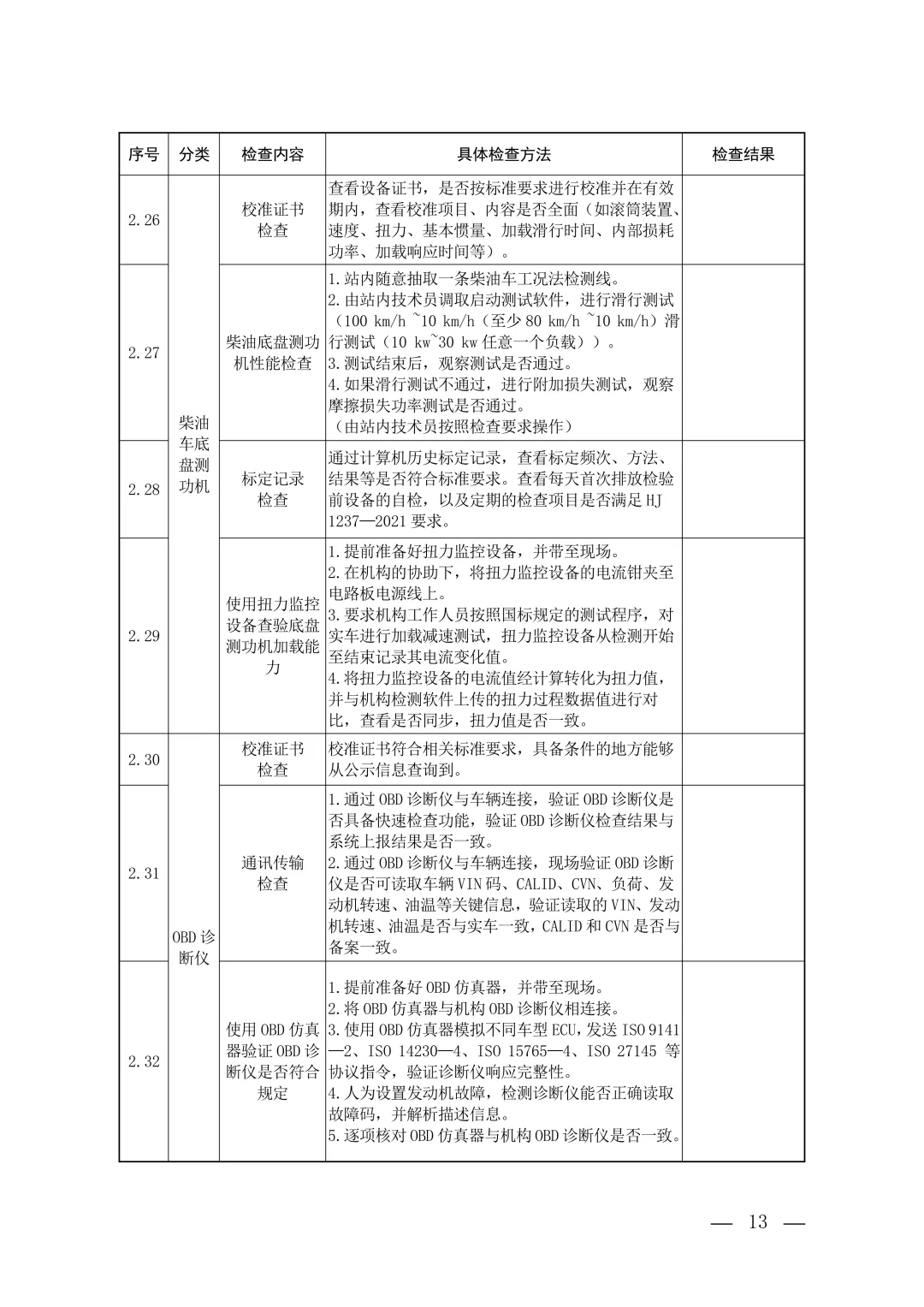 (二)规范现场评审要求。按照《机动车检验机构排放检验设备和人员能力现场评审指导书》实施清单式现场评审,严格执行检验机构能力现场审查技术要求,对仪器设备技术指标、软件功能、校准检定证书、与生态环境主管部门联网情况等进行现场确认。加强机构人员现场操作能力审查,严格执行机构人员任职资格和操作技能现场审查要求。