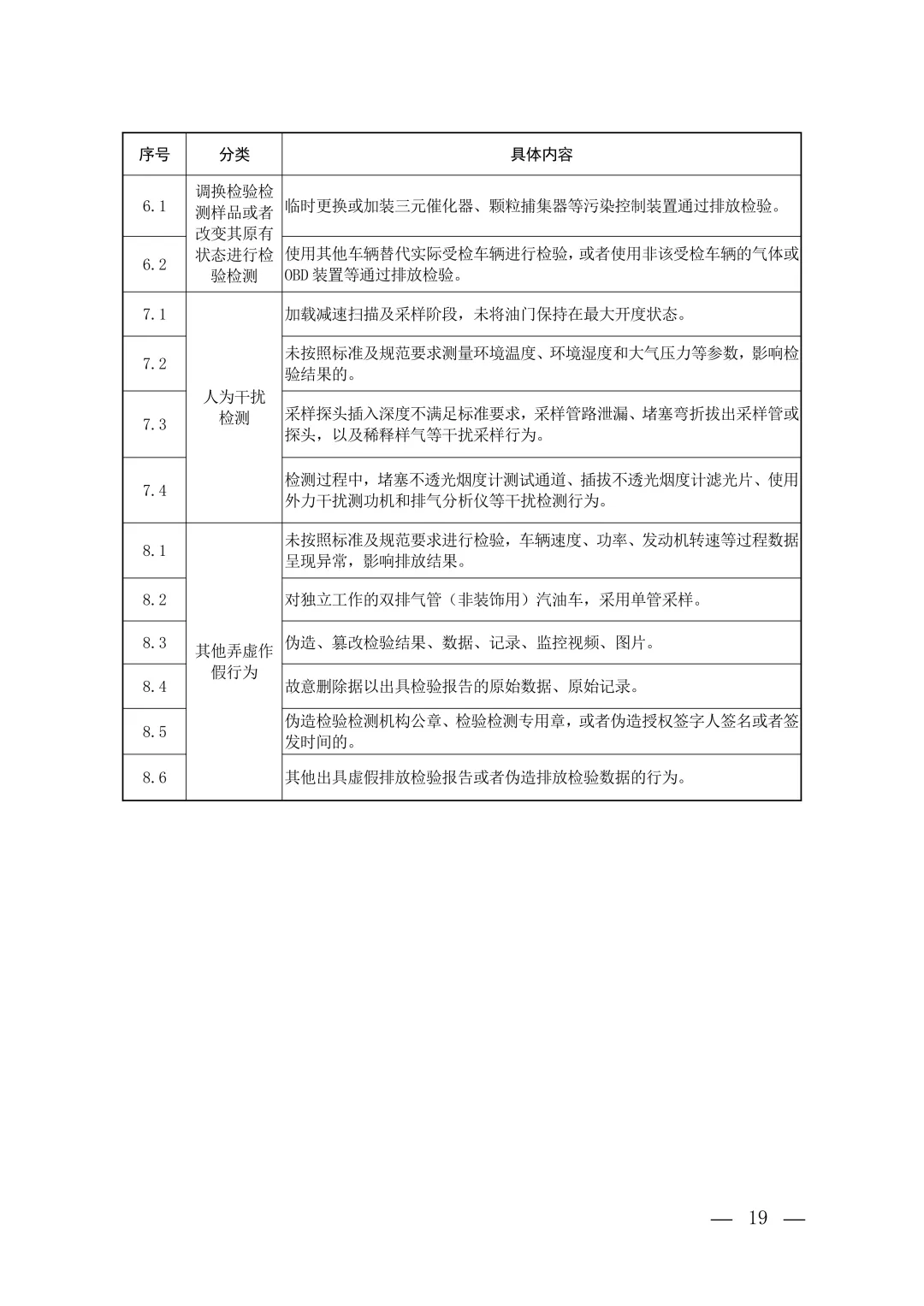 (四)严格依法依规开展检验。检验机构依法严格按照标准和规范开展检验,通过国家监管平台比对车辆信息,严格查验不正常使用污染控制装置、不正常添加尿素、不正常运行车载排放诊断系统(OBD)、擅自改装污染控制装置、擅自篡改 OBD、冒黑烟等“三不两改一黑”问题,提升识别违法违规车辆能力。不得擅自减少检验项目、降低检验标准、改变检验参数和条件、调换检验检测样品或者改变其原有状态、伪造或篡改检验数据和结果等。2026 年年底前,重型燃气车、重型汽油车、重型柴油车(含最大总质量 14 吨及以上车辆)全面实行工况法。