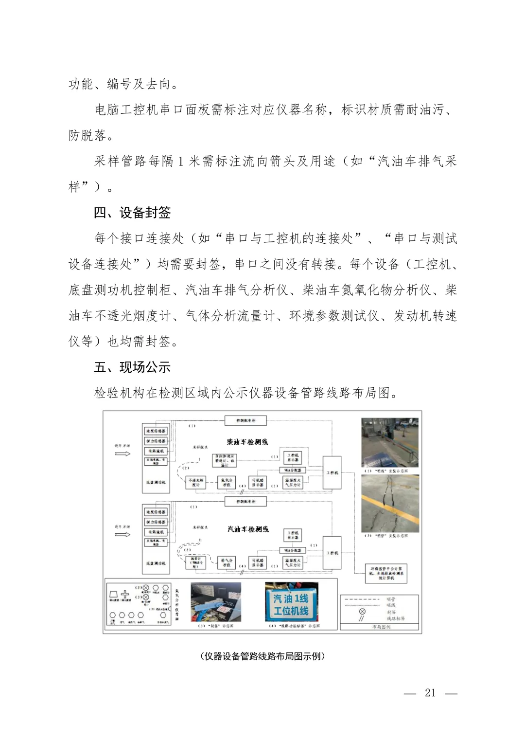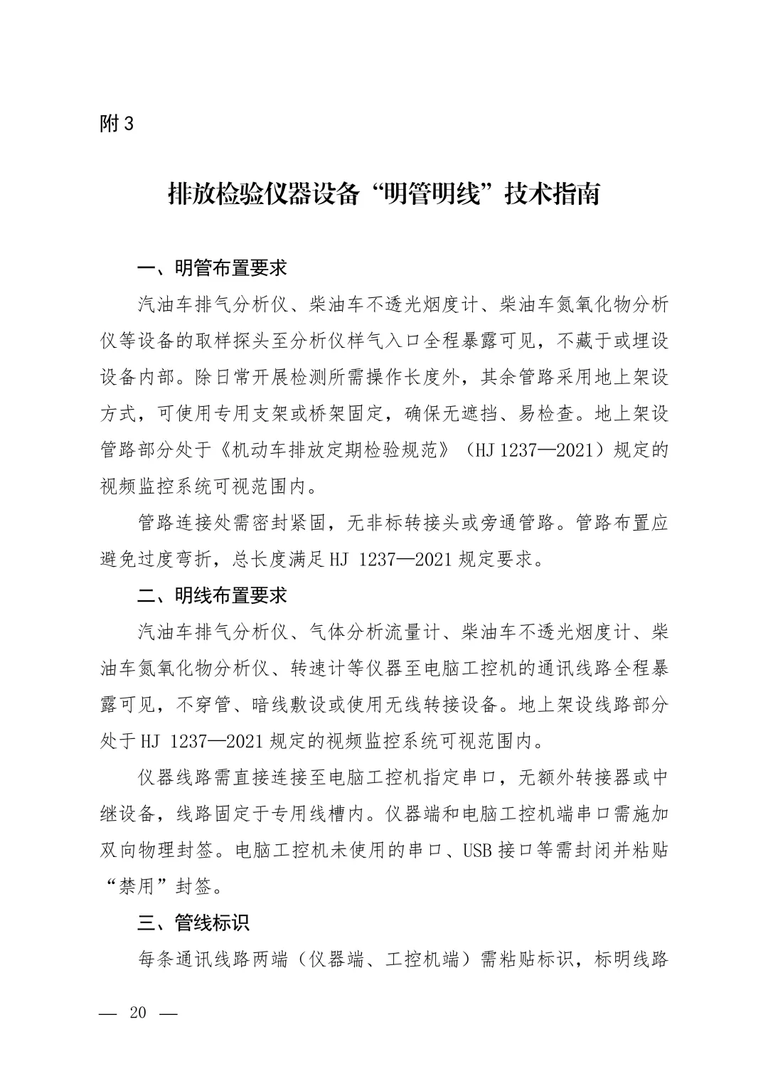 (十)推进“明管明线”管理。鼓励按照《排放检验仪器设备“明管明线”技术指南》(附 3)逐步推行排放检验仪器设备管线布设可视化。严格执行仪器设备物理隔离规定,对检测人员屏蔽检测数据,防范检测人员根据检测过程数据违规中止、调整检测等行为。试点推进电子封签使用,对擅自拆除、改变管线连接等行为实现自动化报警。