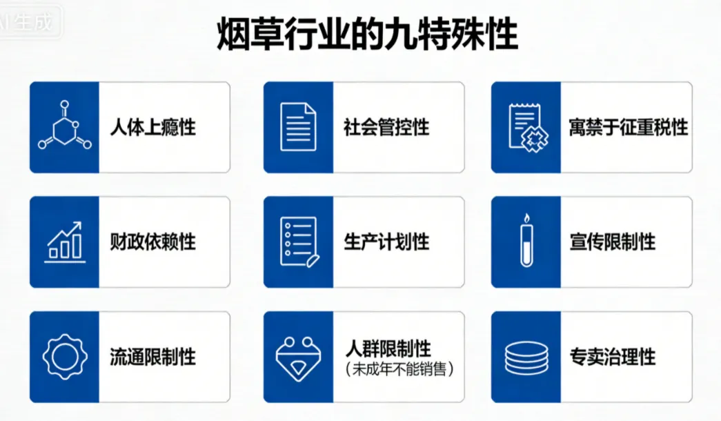 综上所述,烟草行业的九大特殊性相互交织,构成了一张从生理到社会、从经济到管理的复杂网络。