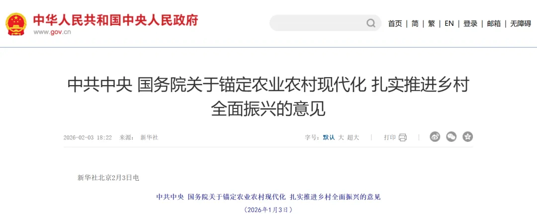 近日,2026年中央一号文件《中共中央 国务院关于锚定农业农村现代化 扎实推进乡村全面振兴的意见》正式发布,这是连续第三年聚焦“粮食安全”“农业现代化”和“乡村振兴”主题。作为农化行业的从业者,我们不仅要读懂政策,更要从中找到行业发展的风向标和行动指南。结合2024年、2025年文件内容,发现政策延续性强、指向明确,对农药制剂行业既有直接拉动,也有深层影响。