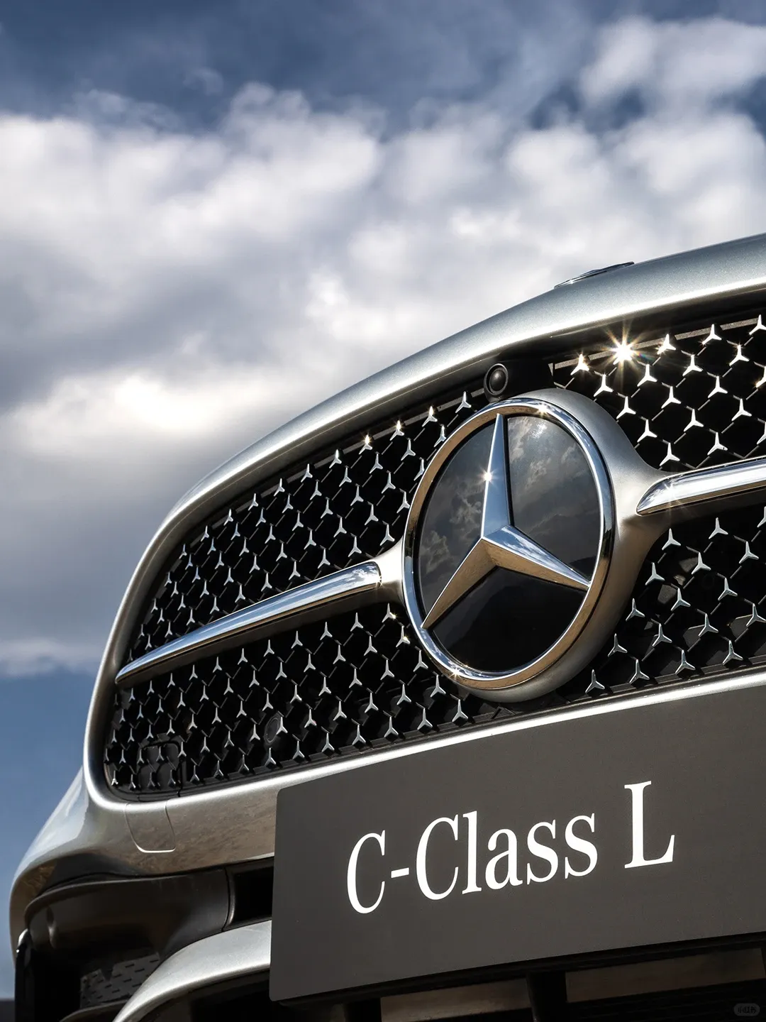 咱们先看外观,我这台.是曜夜版,整车看起来确实.挺帅的,尤其这个立标取消之后,变成了那种大标中网,整体更运动、更.年轻一点。车长.快4米9,轴距2840mm,比起以前老C又大了一圈,看起来不再是“小.奔驰”的气.质,而是有那么点“小E级”的.味儿。然后我摸了一圈,漆面质感还不错,但细看下包围的拼接处,有点“缝太宽”那种感.觉,手指伸进去有明显.的落差,这个.地方有点掉价,典型的车好,做工糙。