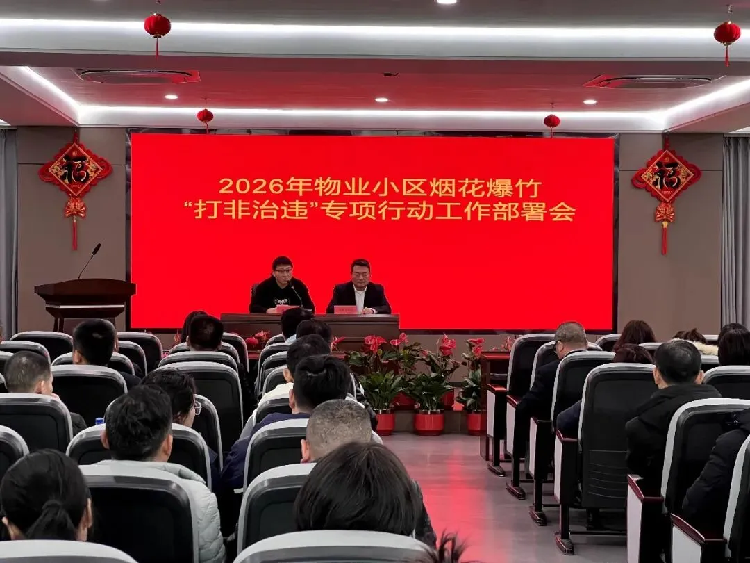 会上,物管站负责人对节前核心工作作出全面部署:一是抓实节前安全生产工作,要求各物业企业全面开展消防、电梯、给排水、配电等重点设施设备隐患排查整改,严格落实24 小时值班值守和应急处置机制,守牢小区安全底线;二是推进烟花爆竹 “打非治违” 专项行动,严格执行烟花爆竹禁限放规定,加强小区公共区域、楼道、消防通道等重点区域巡查劝导,及时制止违规燃放行为;三是统筹做好环境卫生整治与节日氛围营造,全面清理小区公共区域杂物、卫生死角,规范摆放各类设施,同时结合节日特色布置小区环境,让居民感受浓厚节日氛围。